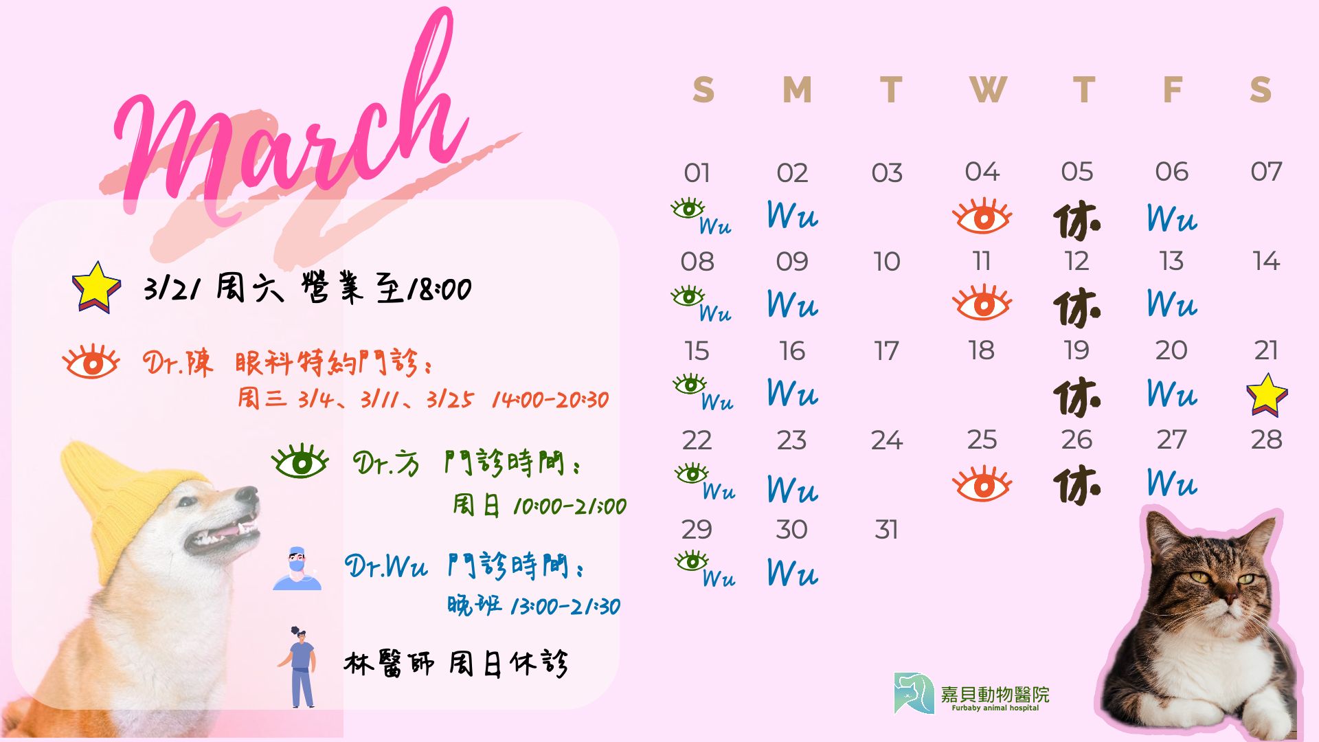 Dr.陳 眼科特約門診:週三 3/4、3/11、3/25 14:00-20:30